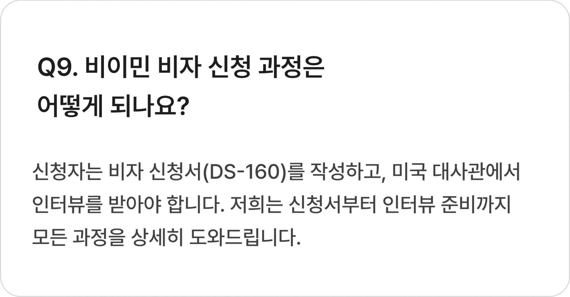 미국 비자 수속, 맞춤형 지원으로 복잡한 절차를 신속하고 정확하게 처리합니다.